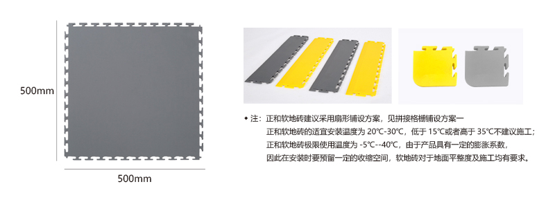 軟質(zhì)絕緣地板能將每個(gè)獨(dú)立的地板快速拼裝成整體地面,專利型鎖扣結(jié)構(gòu)連接能力更強(qiáng),可承受叉車的來回碾壓。施工過程中無需膠黏劑等材質(zhì),具有施工簡單快速、色彩絢麗、美觀大方、可移動(dòng)性強(qiáng)、可重復(fù)使用等特點(diǎn)。