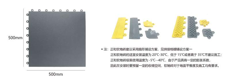軟質絕緣地板能夠將每個獨立的地板快速拼裝成整體地面,專利型鎖扣結構連接能力更強,可承受叉車的來回碾壓。施工過程中無需膠黏劑等材質,具有施工簡單快速、色彩絢麗、美觀大方、可移動性強、可重復使用等特點。
