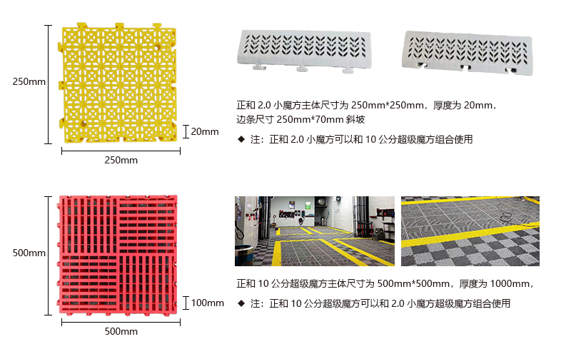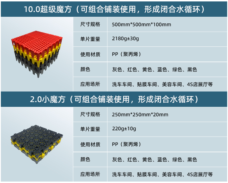 你以為60毫米厚度已經(jīng)是終點?正和100毫米厚度【終級魔方】再次刷新認(rèn)知!超強(qiáng)承載,極限容納泥沙量,嵌入式施工,讓洗車車間高效完美! 10公分終極魔方(50*50*10CM)與2.0小魔方(25*25*2CM)可組合鋪裝使用,形成閉合水循環(huán)